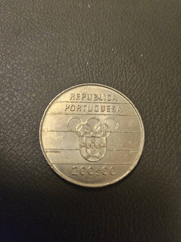 Cette pièce, datée de 1992, célèbre les XXVe Jeux Olympiques d'été, qui se sont tenus à Barcelone, en Espagne. Sur l'avers, on distingue une gravure stylisée représentant une figure humaine dans une posture dynamique, symbolisant l'esprit sportif. Les inscriptions « XXV JOGOS OLÍMPICOS » et « 1992 » sont également gravées sur le côté visible.